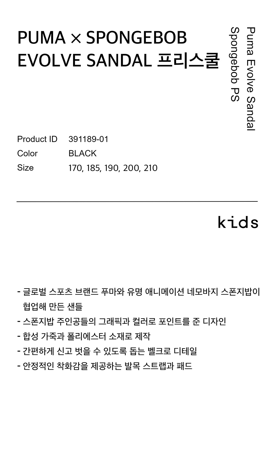 푸마Ⅹ스폰지밥 이볼브 샌들 프리스쿨 - 블랙
