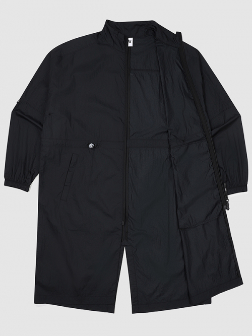 - 매끄러운 표면의 나일론 원단으로 고급스러운 소재감의 롱 기장 우븐 자켓.