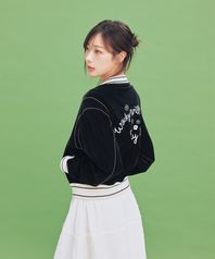 [지젤 착용] 우먼스 벨벳 라이크 바시티 자켓 블랙
