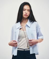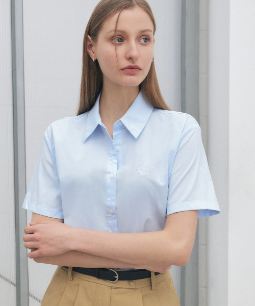 링클 프리 반팔 크롭 셔츠_SKY BLUE