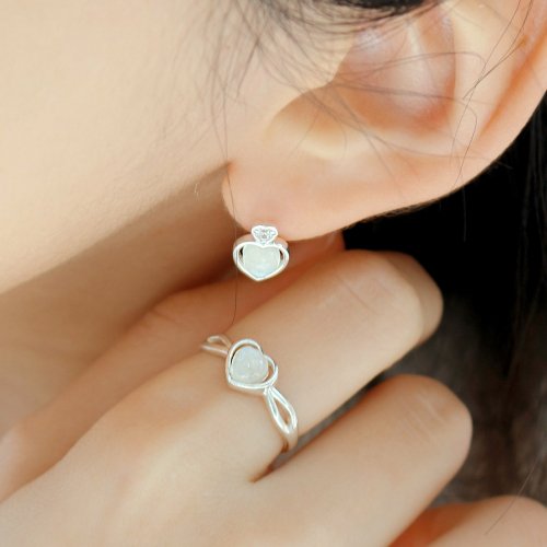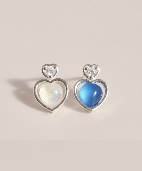 925실버 천연 원석 하트 귀걸이 리베 /Liebe