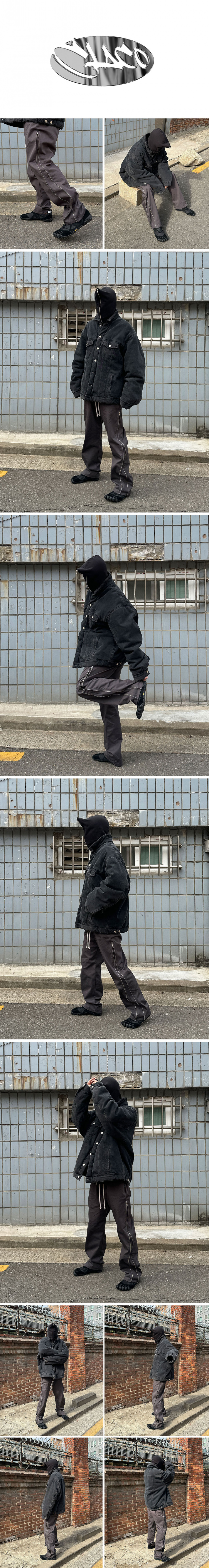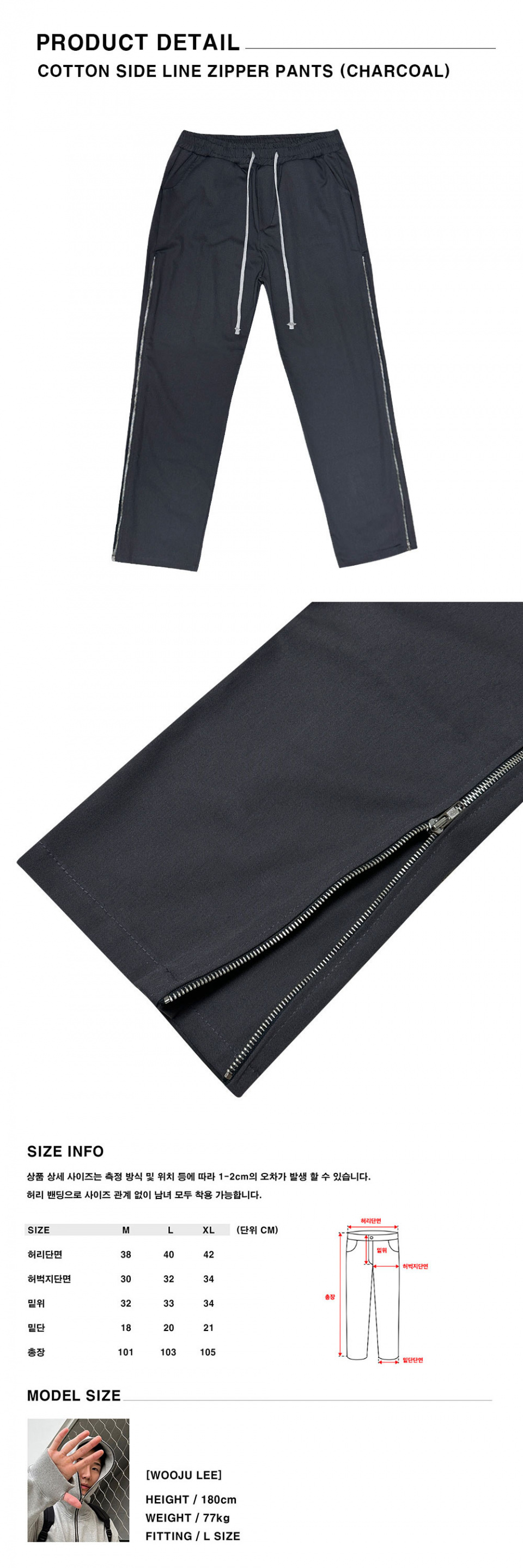 코튼 사이드 라인 지퍼 팬츠 (차콜)