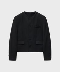 린넨 논카라 크롭 자켓 (블랙)