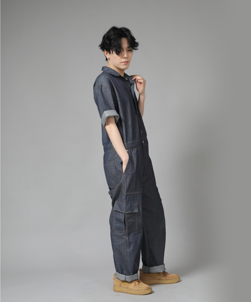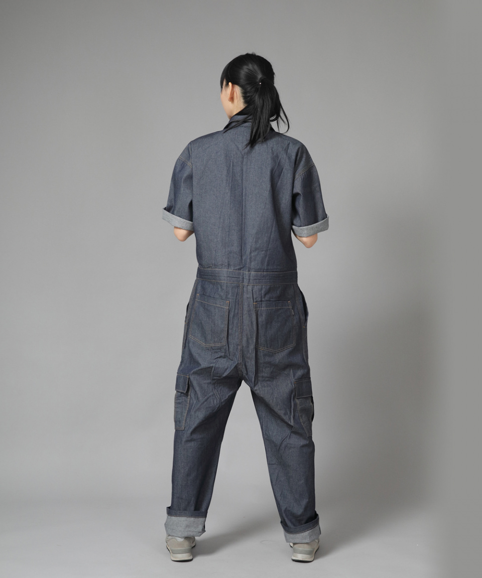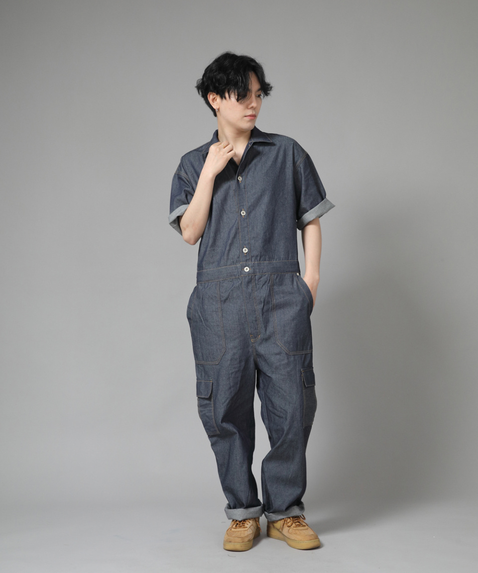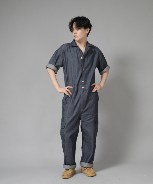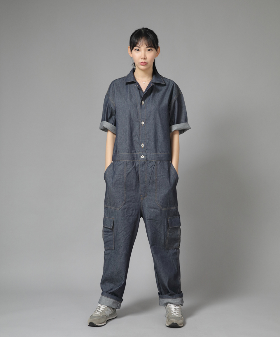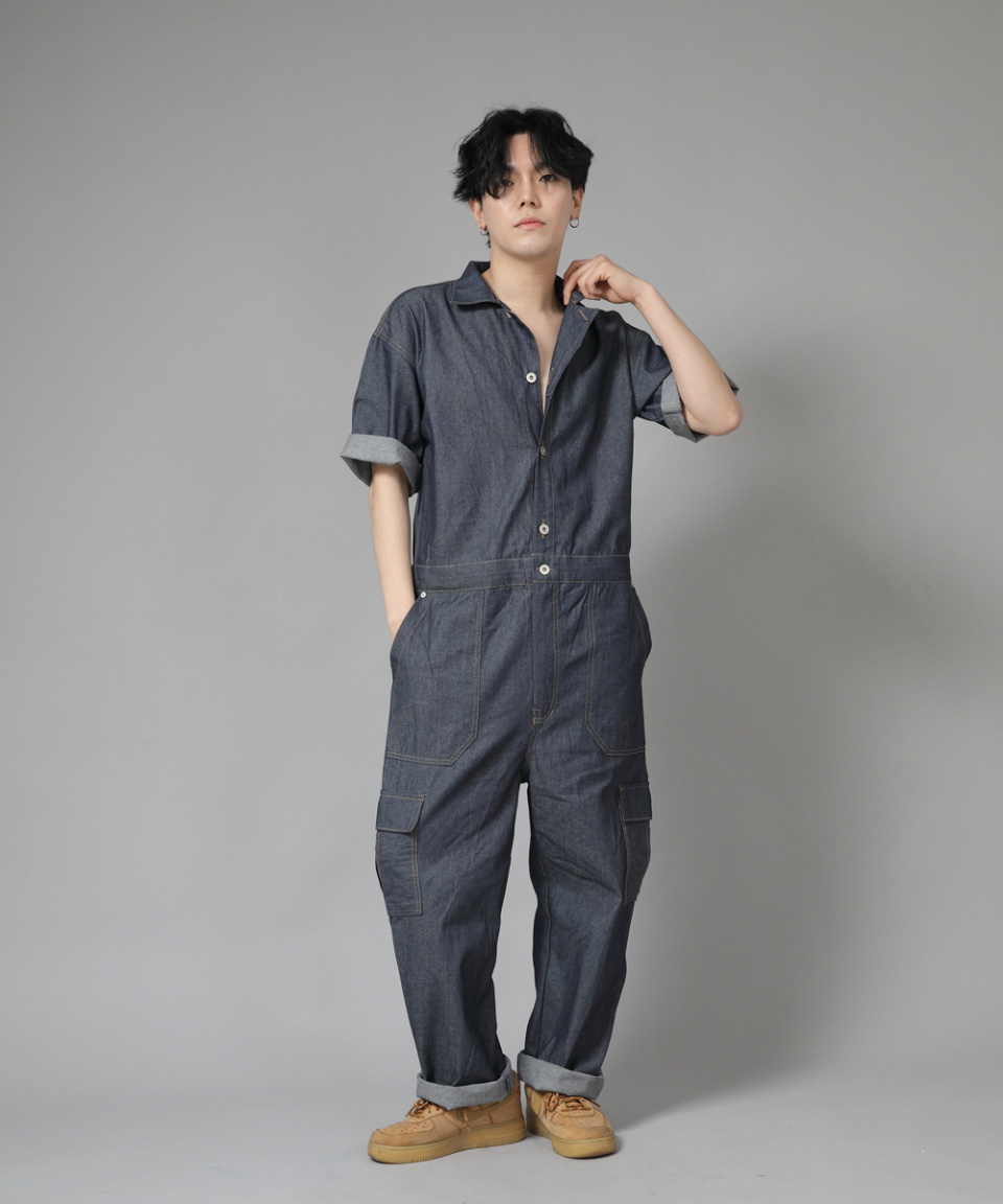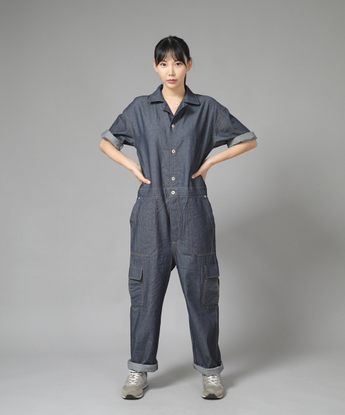 레트로라인 카고 반팔점프슈트 RLC-514 데님 라이트인디고