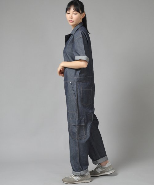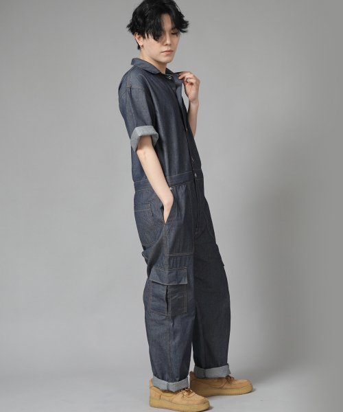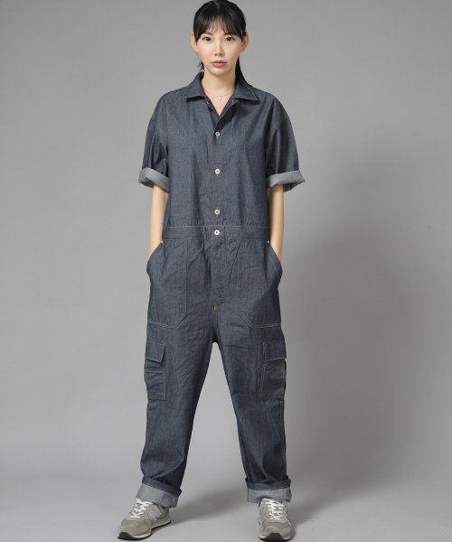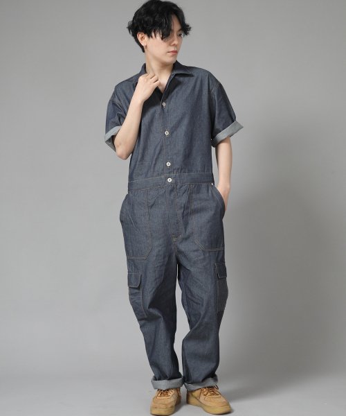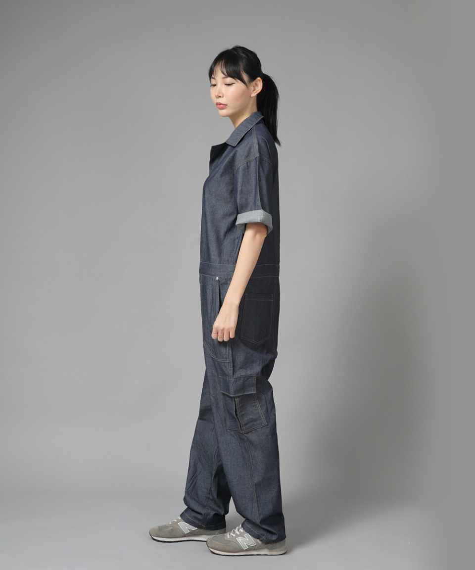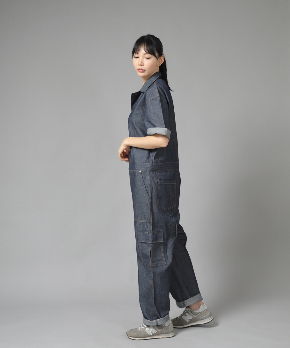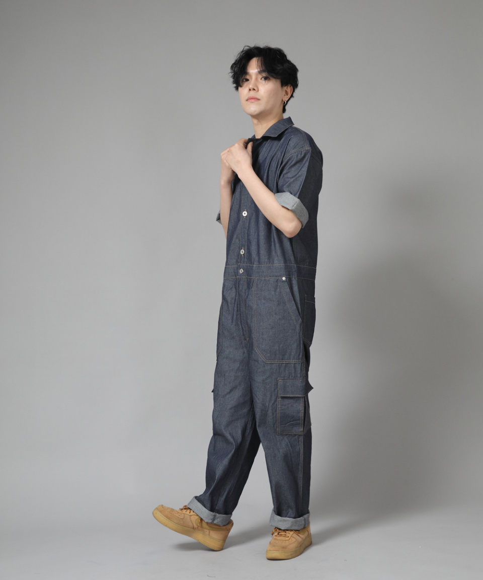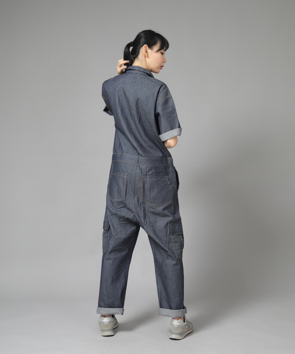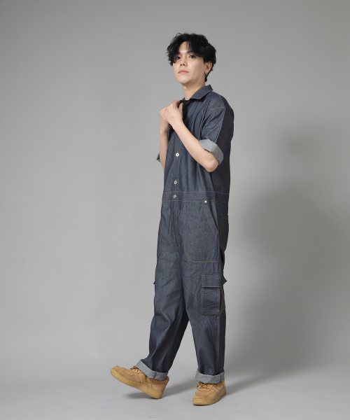 레트로라인 카고 반팔점프슈트 RLC-514 데님 라이트인디고