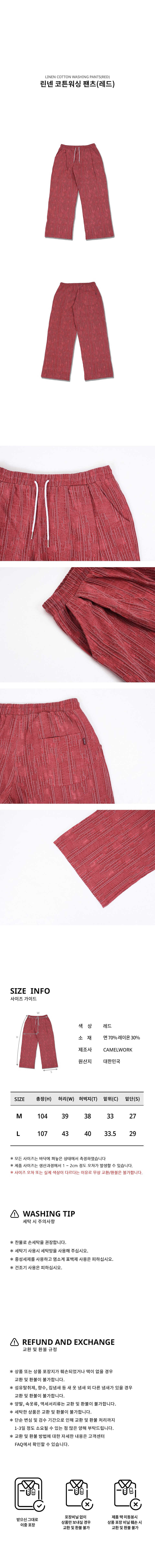 린넨 코튼 워싱 팬츠(레드)