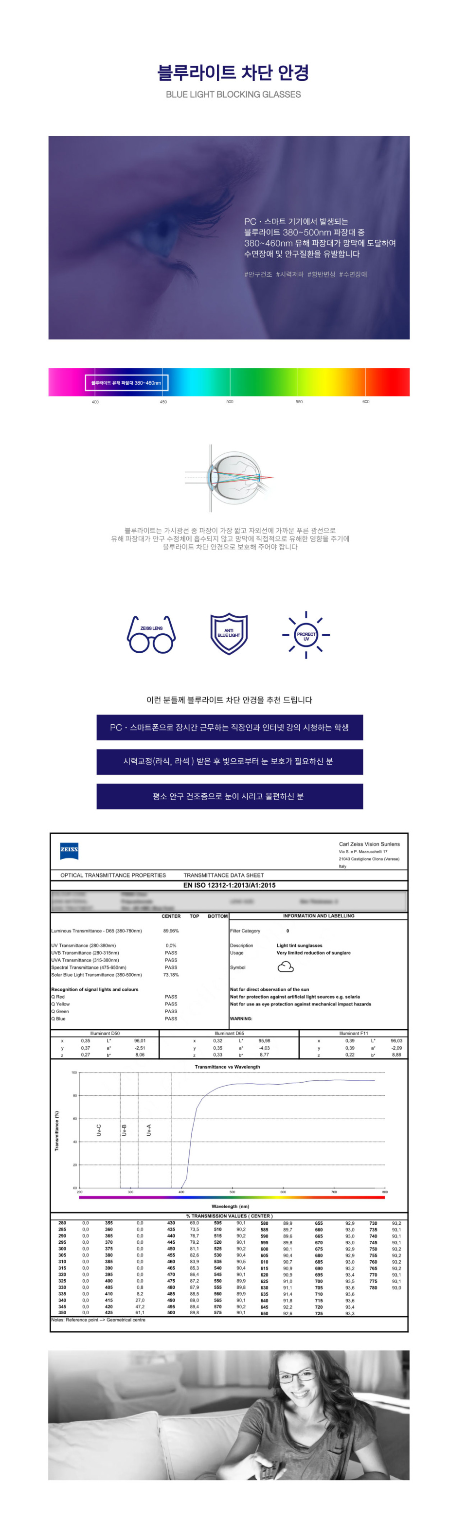 자이스 렌즈 남녀공용 블루라이트차단 뿔테 안경 TOM C5