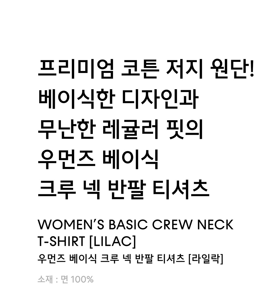 우먼즈 베이식 크루 넥 티셔츠 [라일락]
