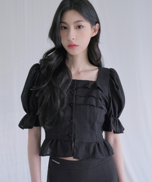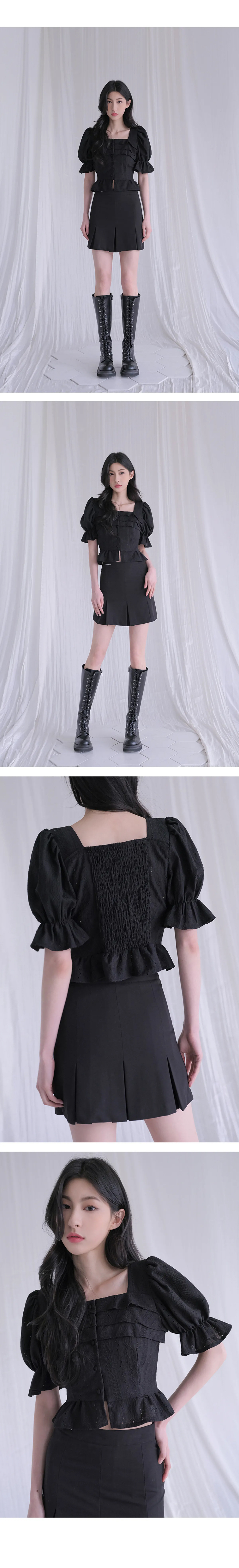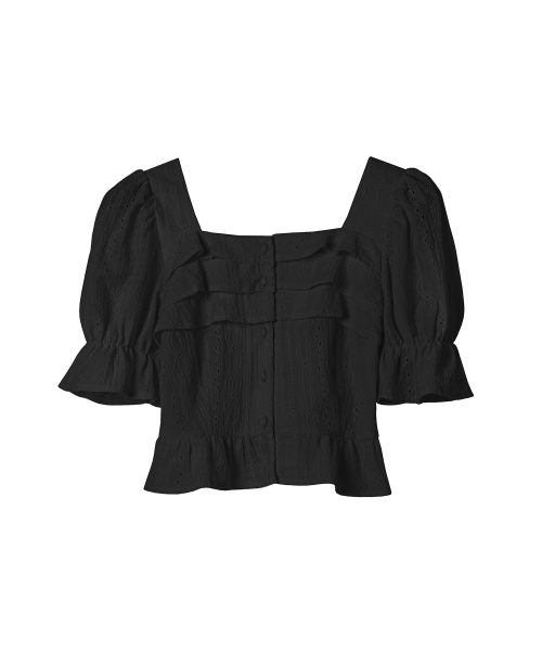 punching frill blouse BLACK