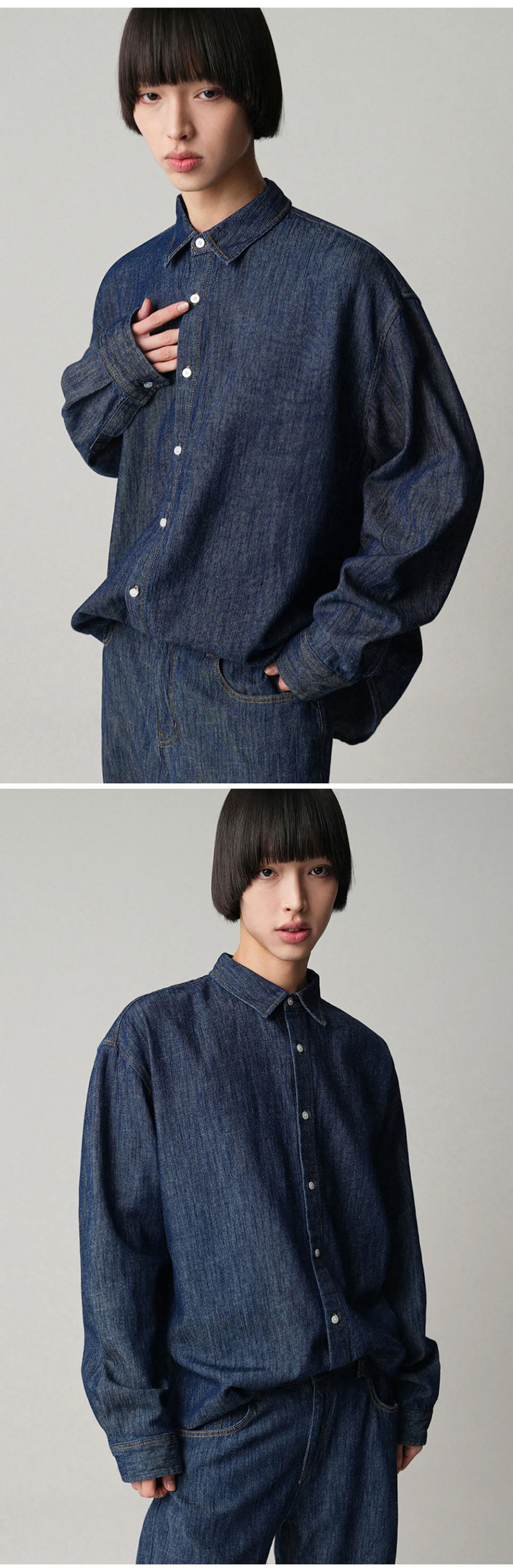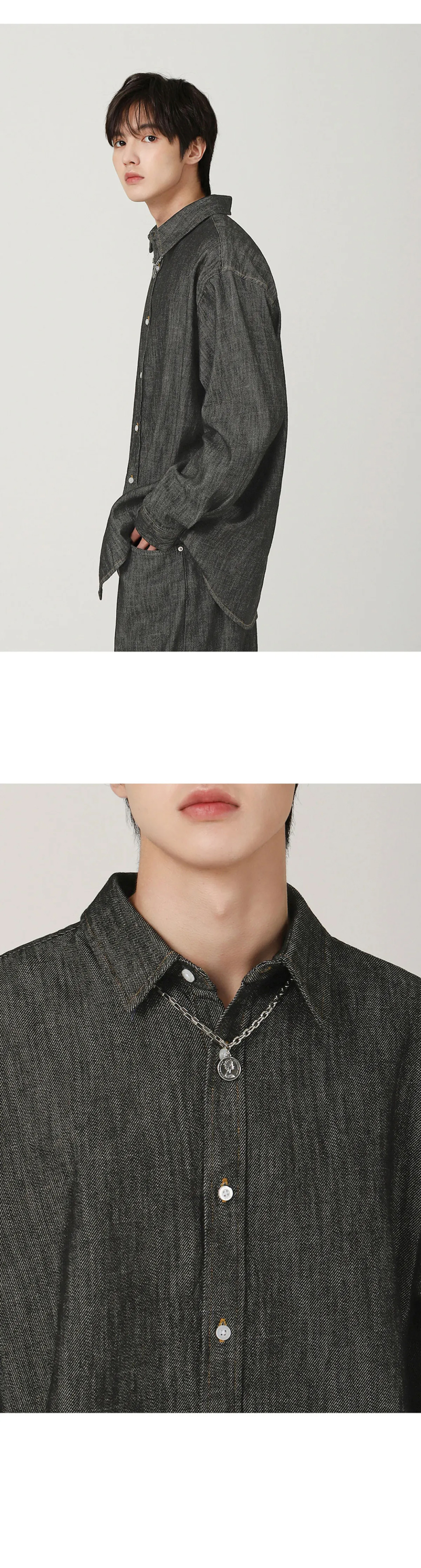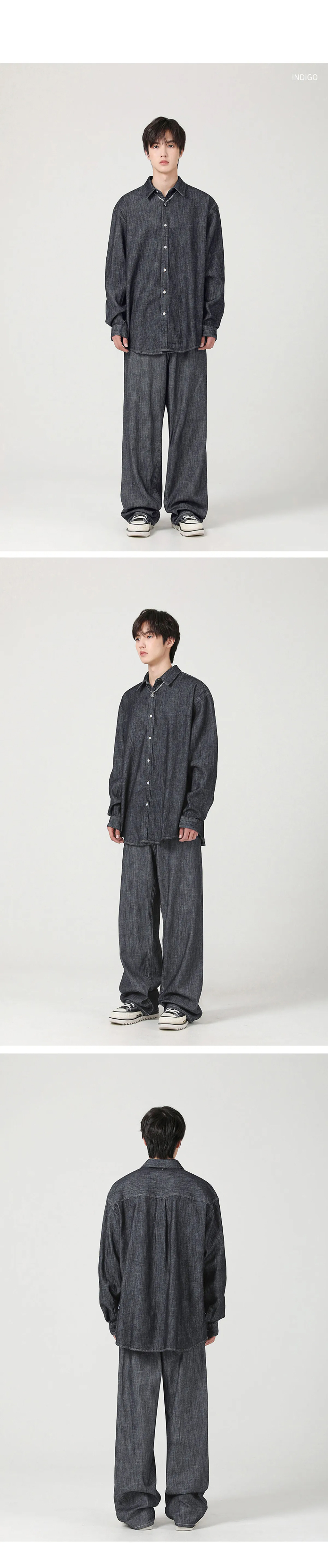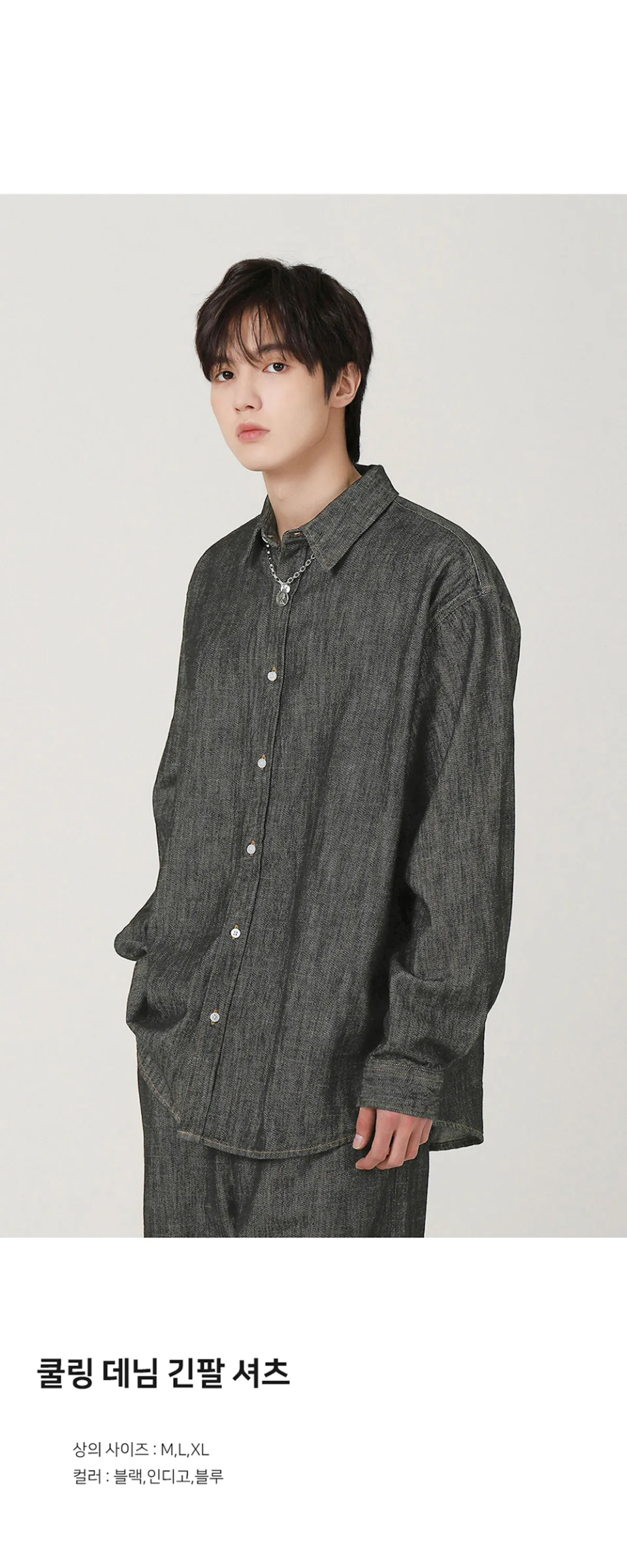 쿨링 데님 긴팔 셔츠 - 3COL