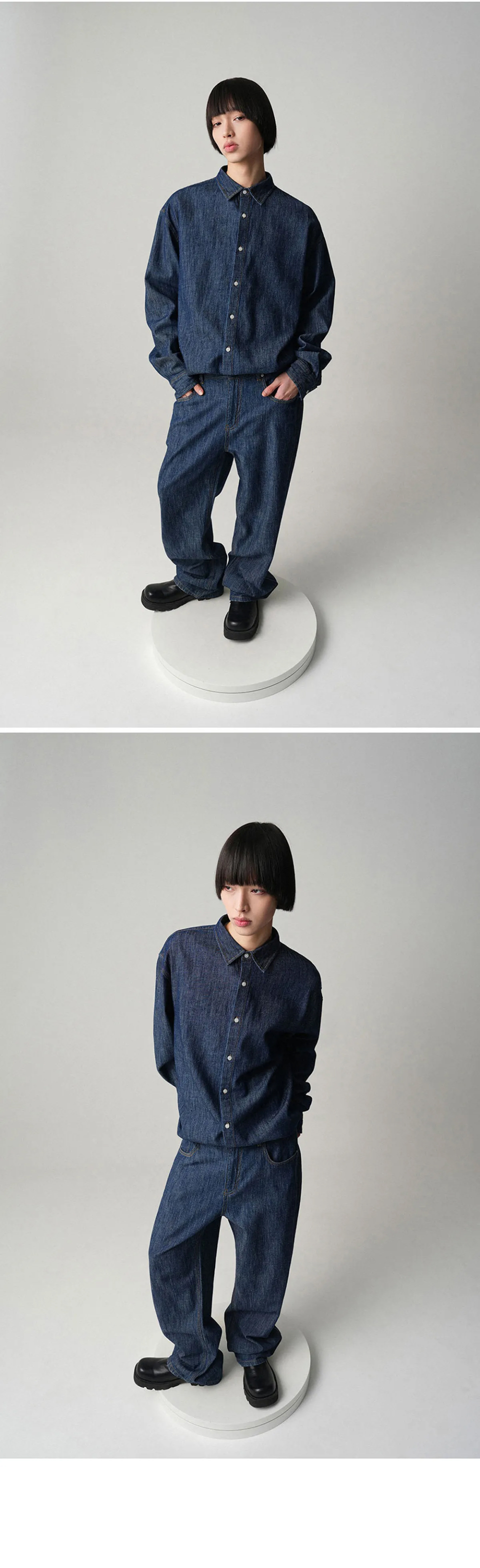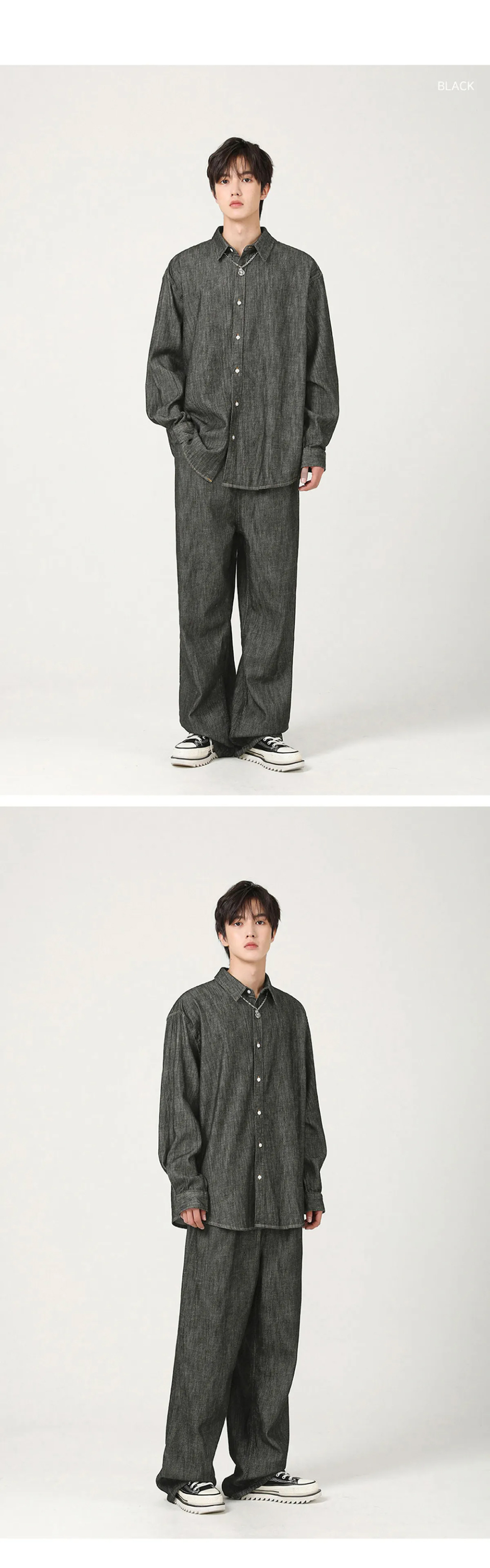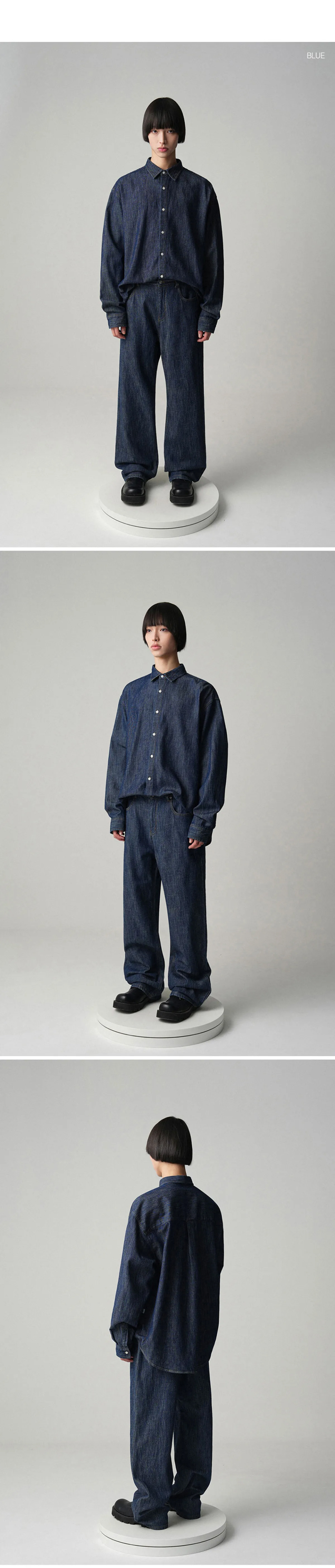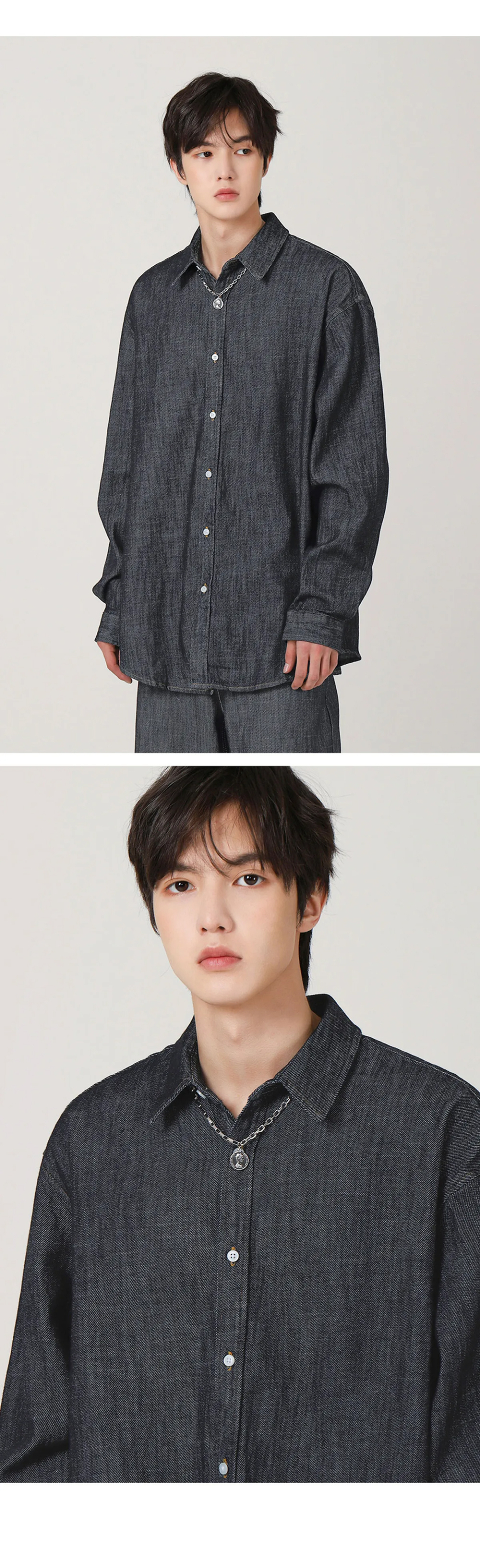 쿨링 데님 긴팔 셔츠 - 3COL