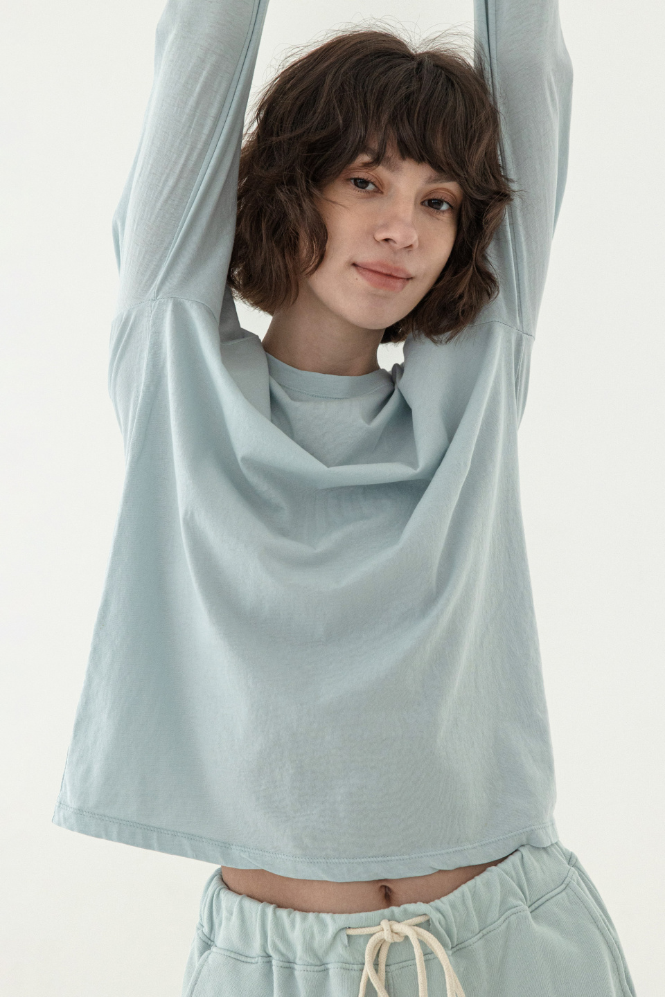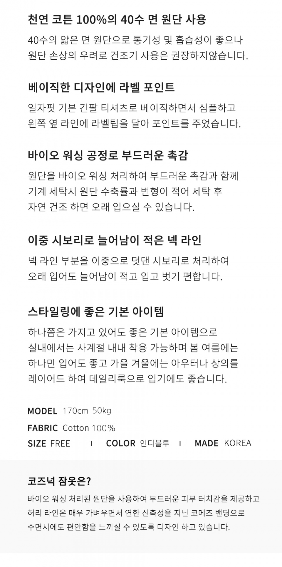 마들렌 기본 여성 긴팔 티셔츠 인디블루
