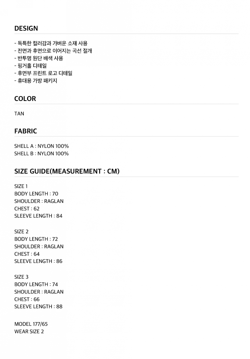 PACKABLE LIGHT JACKET [TAN]