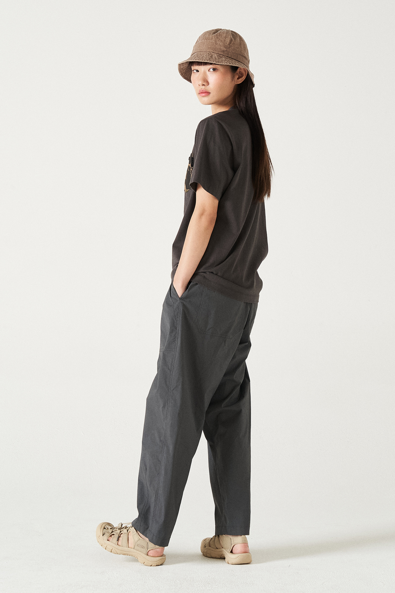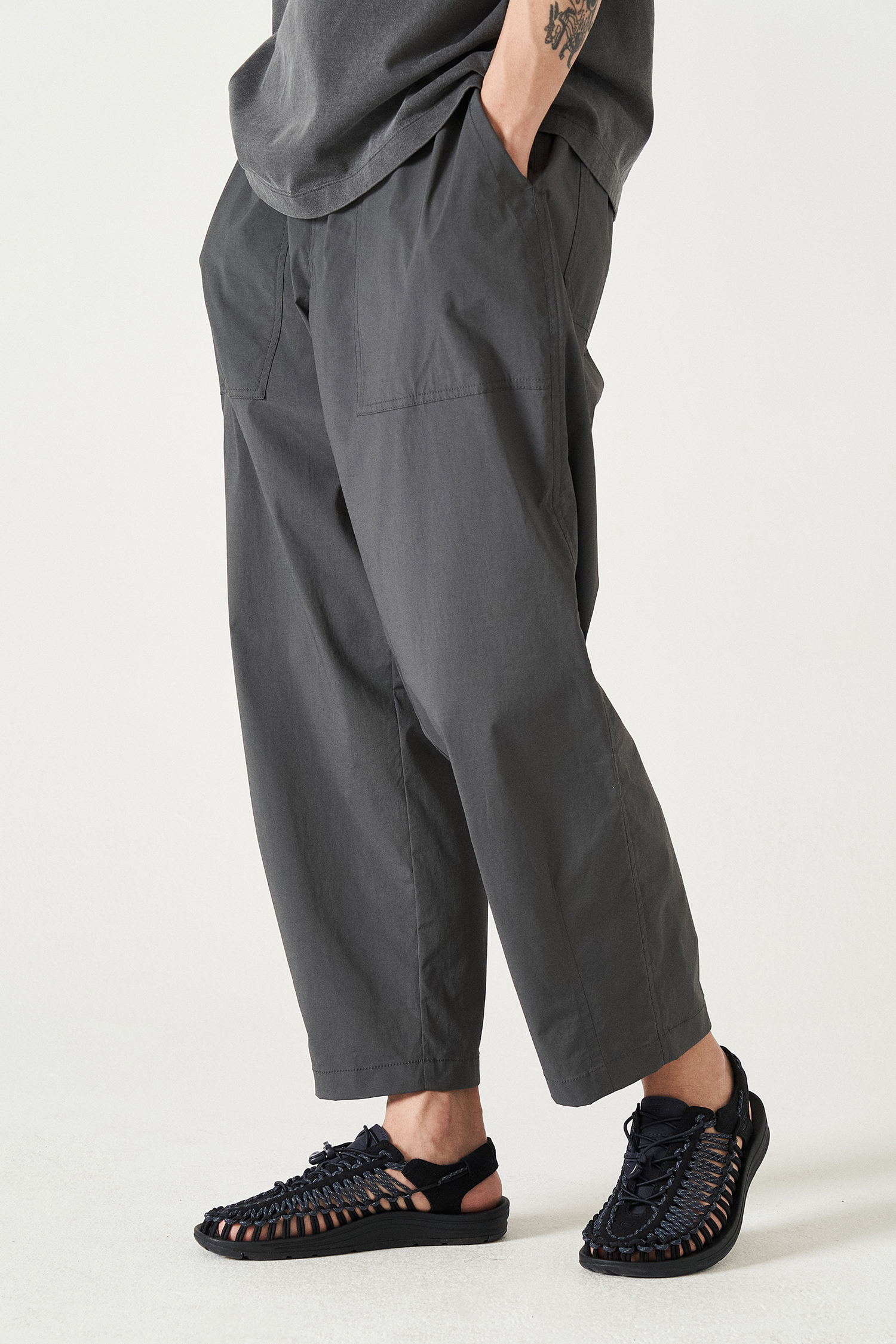 가장 멋지게 떨어지는 세미 배기핏으로 편안한 피팅감의 우븐 팬츠입니다