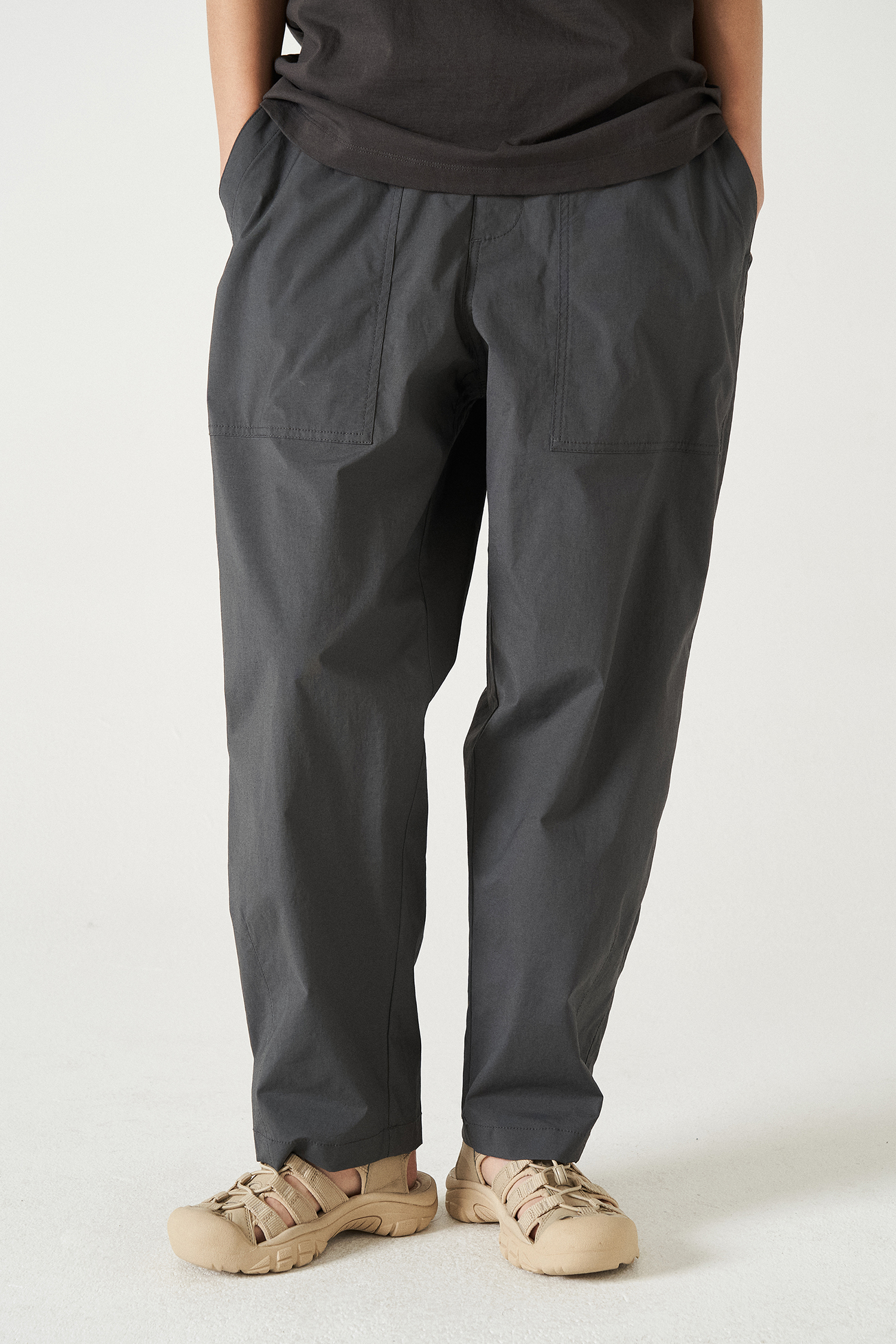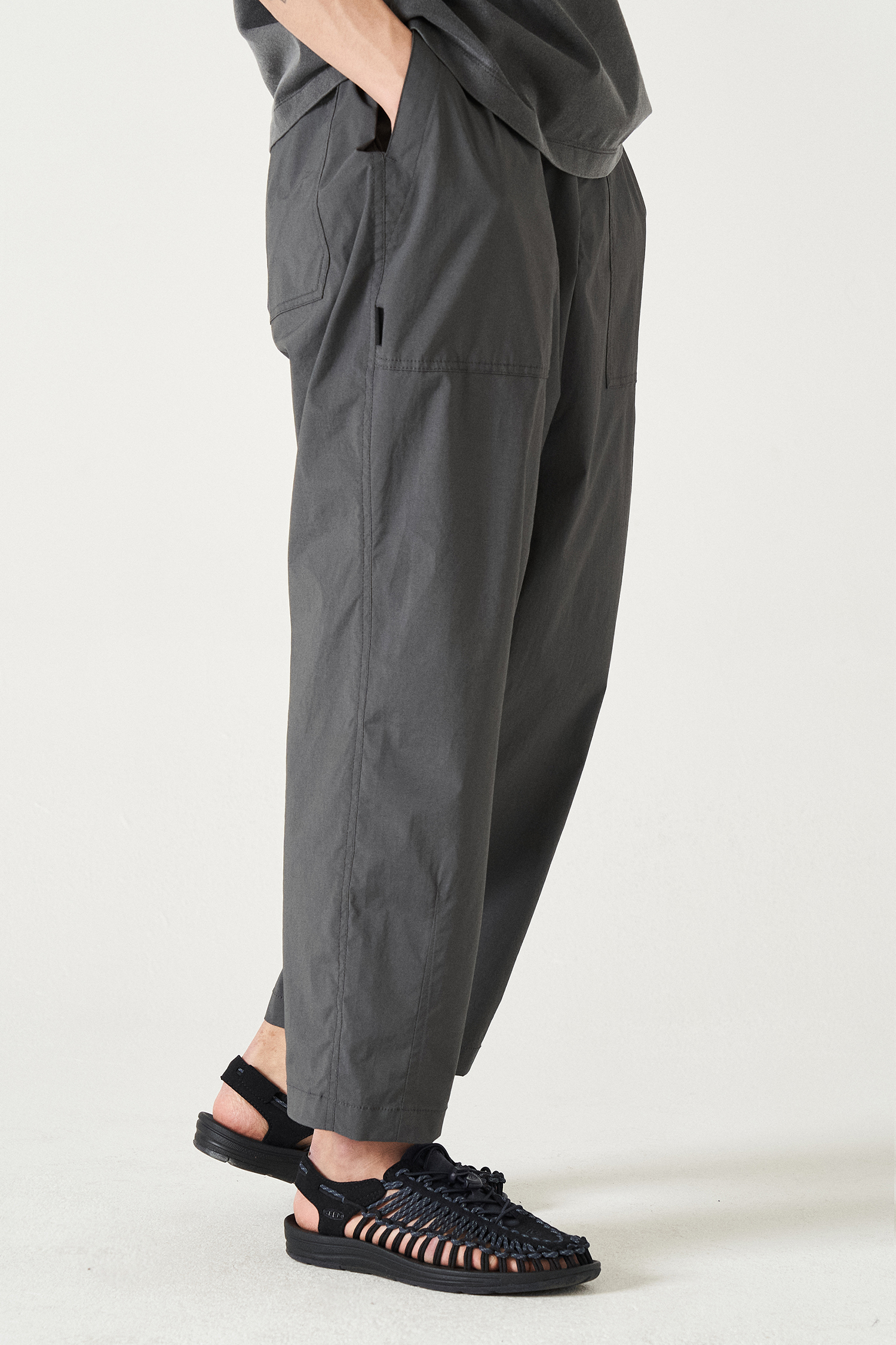 더운 여름철 기존 우븐팬츠 대비 들러붙지 않는 편안함과 시원한 착장감을 제공합니다