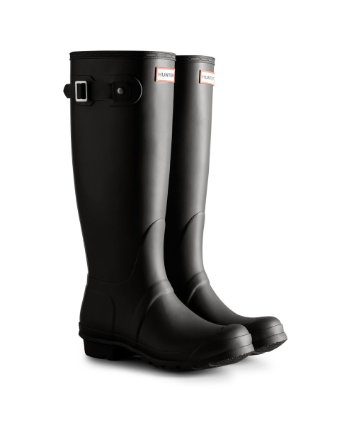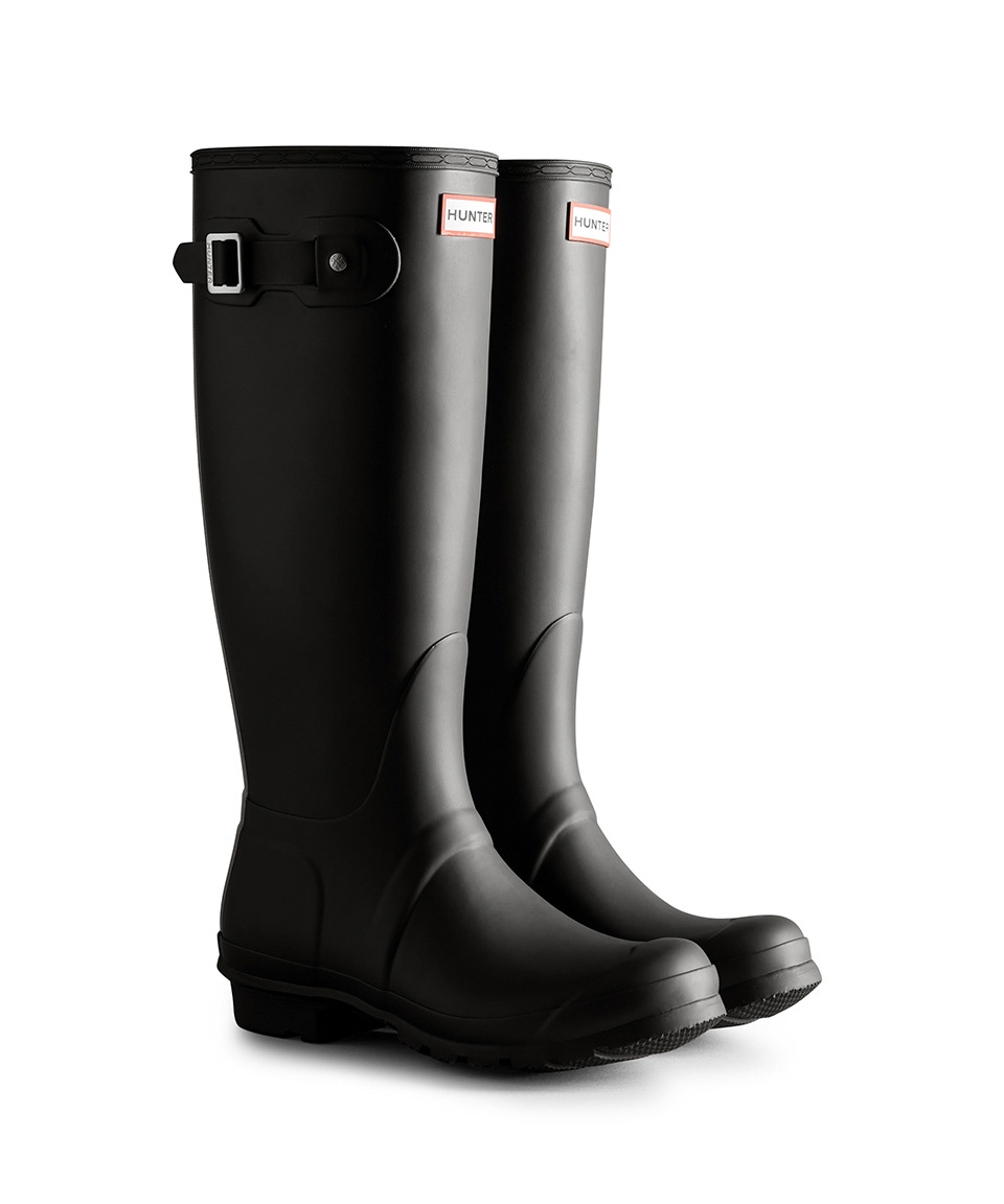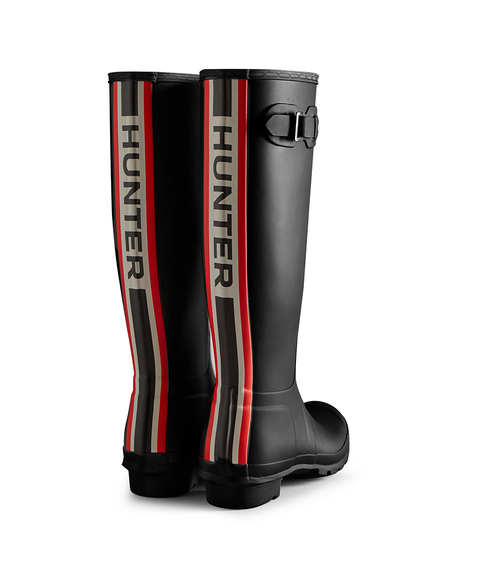 [WOMEN] 오리지날 헌터 컬러 백프린트 톨 레인부츠 - 블랙