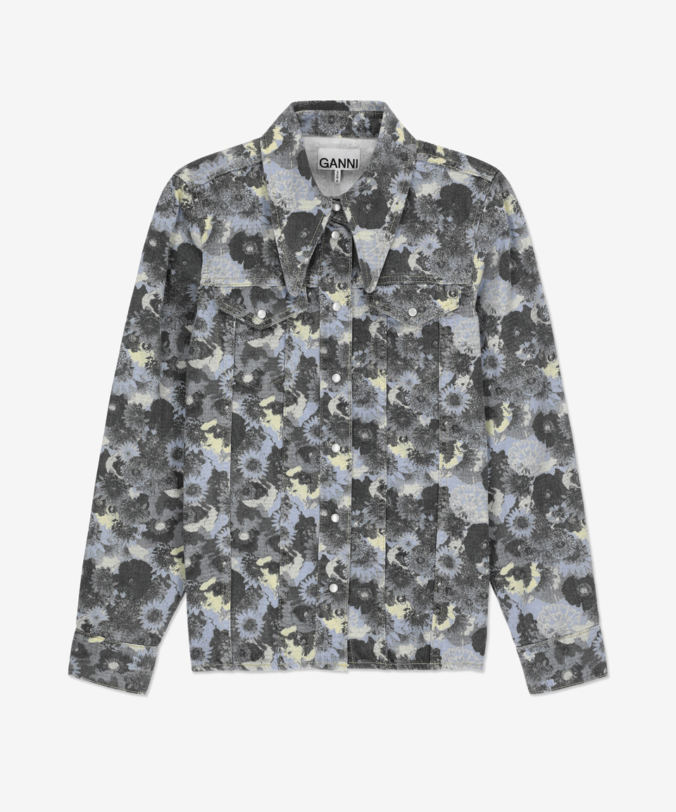 프린트 데님 셔츠 - 브루넬라 블루 / J1166699