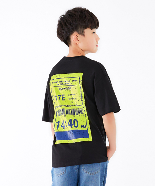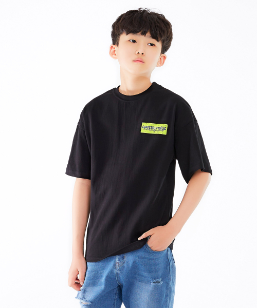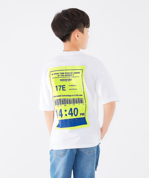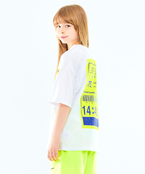 주니어 네온 바코드 프린팅 오버핏 반팔티셔츠 JT-J3169