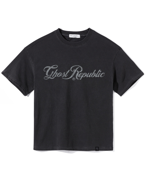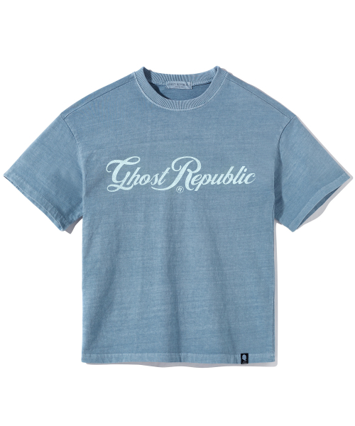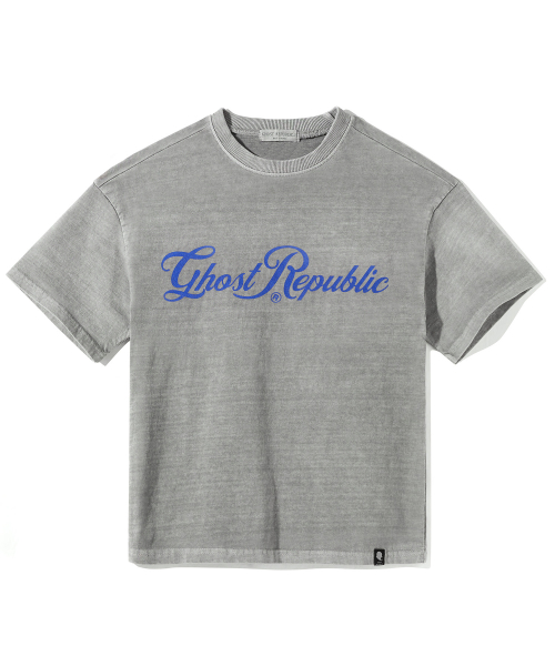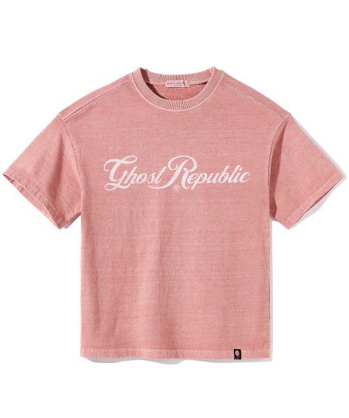 커시브 레터링 피그먼트 오버핏 반팔 티셔츠 JT-3201