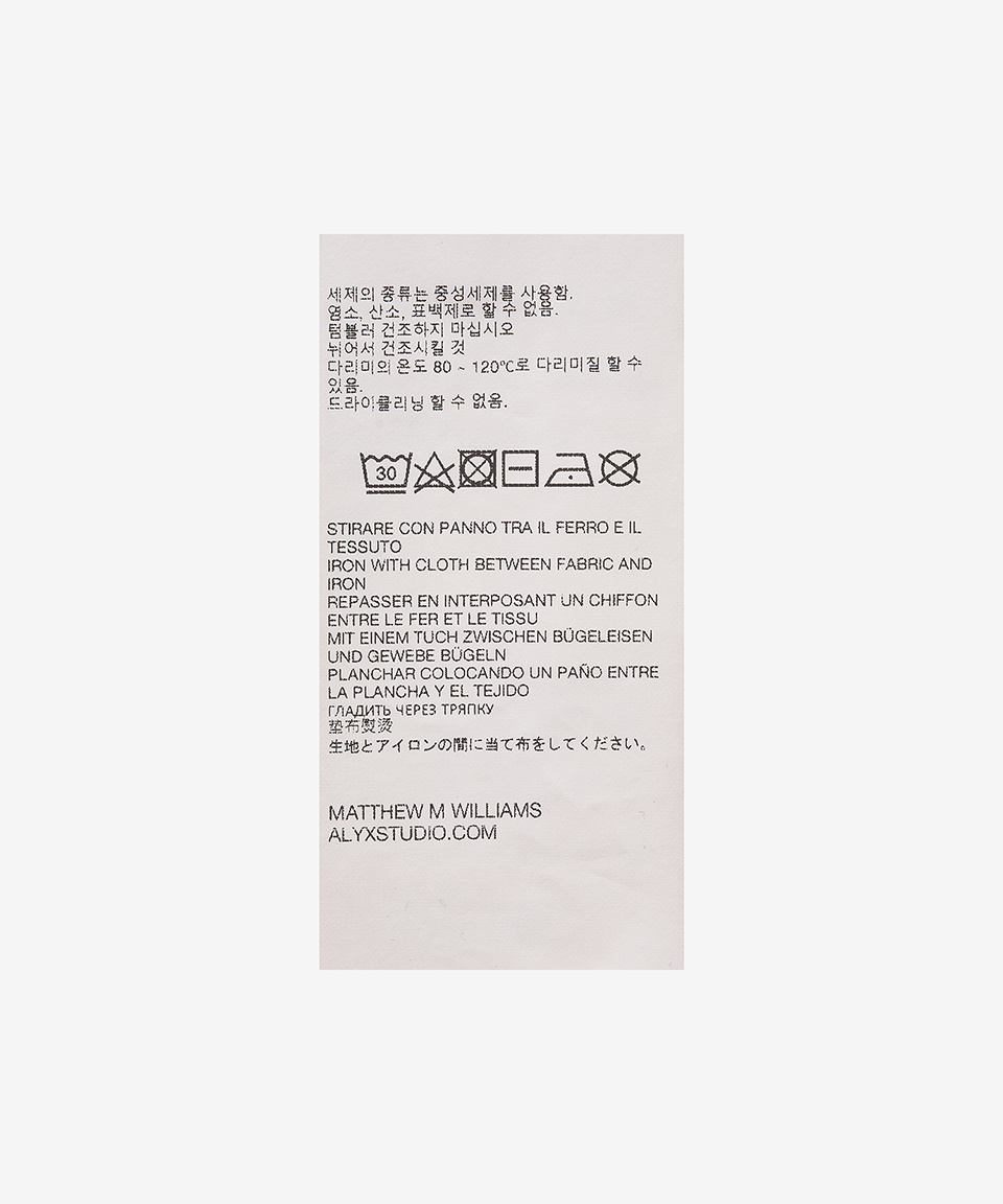 1017 알릭스 9SM(1017 ALYX 9SM)은 2015년 뉴욕 출신의 디자이너 매튜 윌리엄스(Matthew M. Williams)가 론칭한 토털 패션 브랜드입니다. 서브컬처 감성을 모티브로 고감도의 첨단 소재와 정교한 수작업이 특징인 1017 알릭스 9SM은, 그 특유의 기술력을 바탕으로 '변하지 않는 제품'에 집중합니다. 혁신적인 기술이 겸비된 감성적인 디자인을 겸비한 1017 알릭스 9SM의 다양한 상품을 부티크에서 만나보세요.