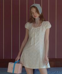 쥬니 리본 자수 스퀘어 원피스