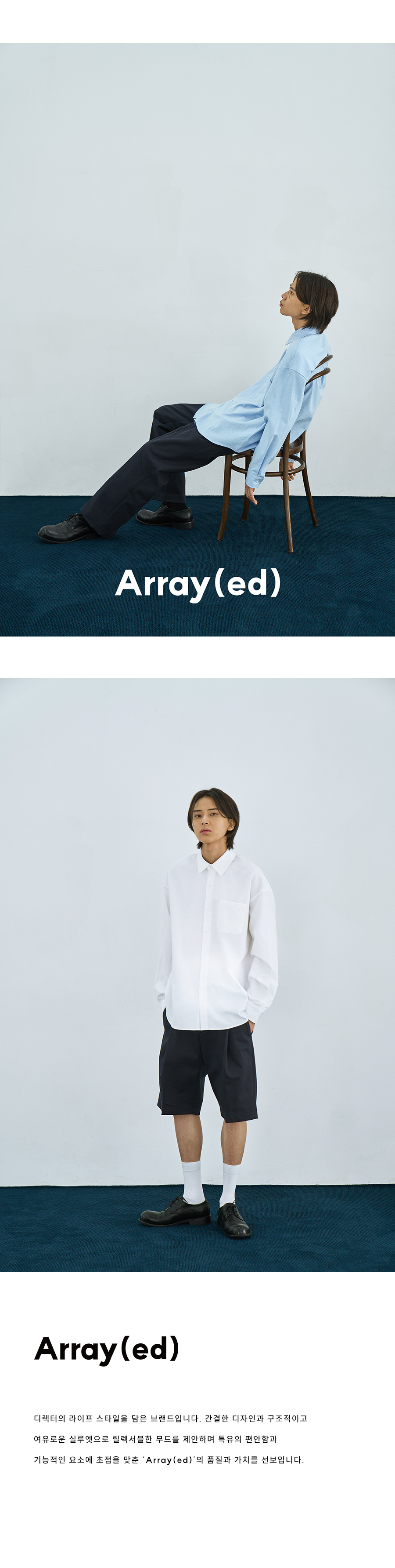 어레이드(ARRAYED)는 '특별히 멋진 옷을 입은'이라는 뜻을 기반으로 쉽게 접근할 수 있는 아이템을 재해석하여 실루엣과 디테일에 집중한 디자인을 중점적으로 전개합니다. 잘 만들어진 아이템 하나로 트렌디하고 패셔너블한 대상으로 보이게끔 하고자 합니다. 또한 '배열하다'라는 이중적 뜻을 담아 의류에만 국한된 브랜드가 아닌 라이프스타일과 뷰티 아이템 등 다양한 각도에서 모습을 보여주고자 합니다.