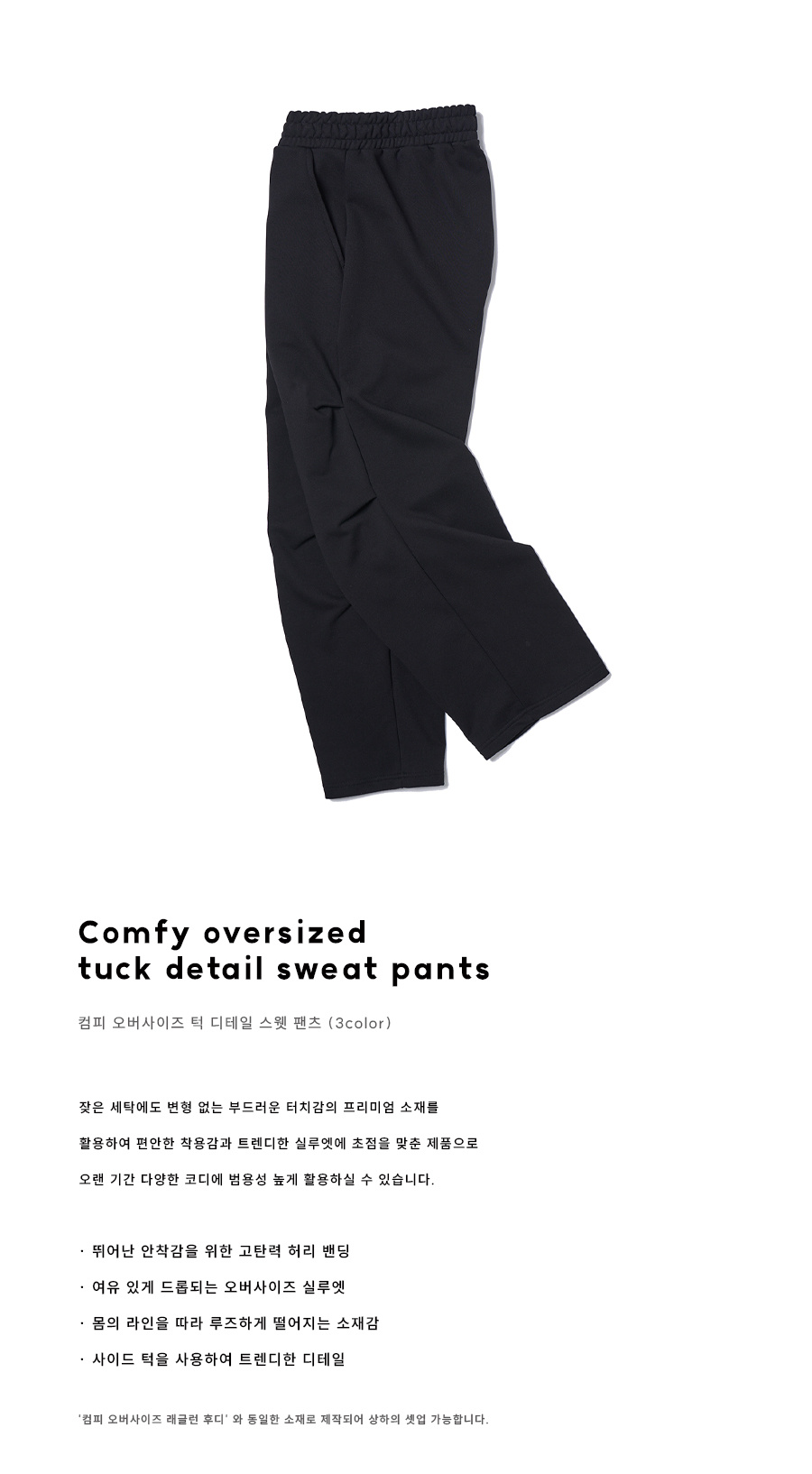컴피 오버사이즈 턱 디테일 스웻 팬츠 [BLACK]
