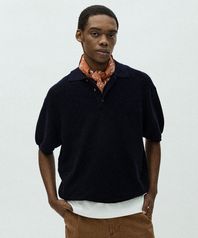 Half-Open Collar Short-Sleeved Cotton Knit (Navy)