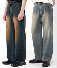 [2PACK]빈티지 프론트 워싱 와이드 청바지 데님 팬츠