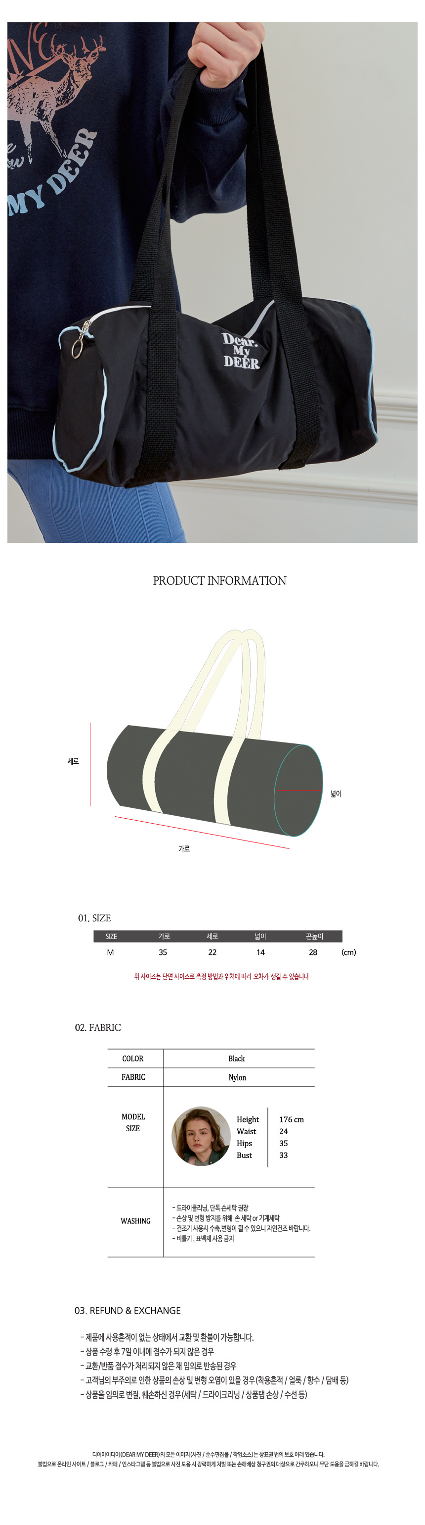 디어 DR 파이프릿 실린더 더플백 (스카이블루)