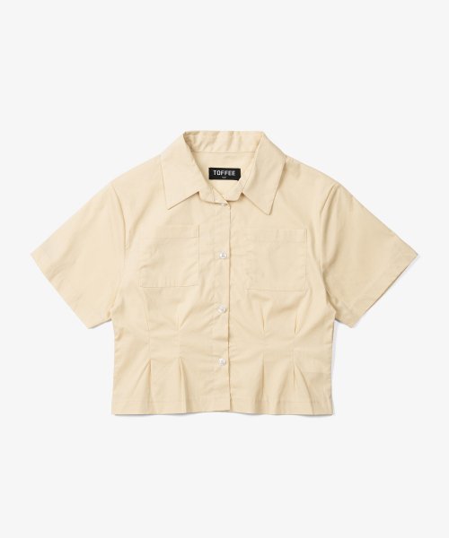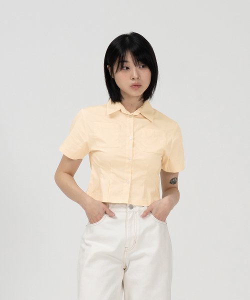 W 크롭 슬림 하프 셔츠 (LEMON)