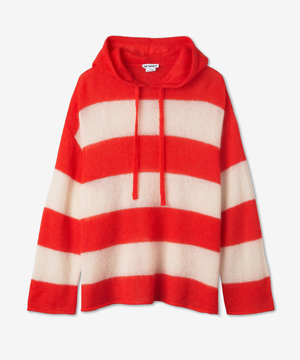 스트라이프 니트 후드 - 레드 / CRTWXKNW004KNT0217468