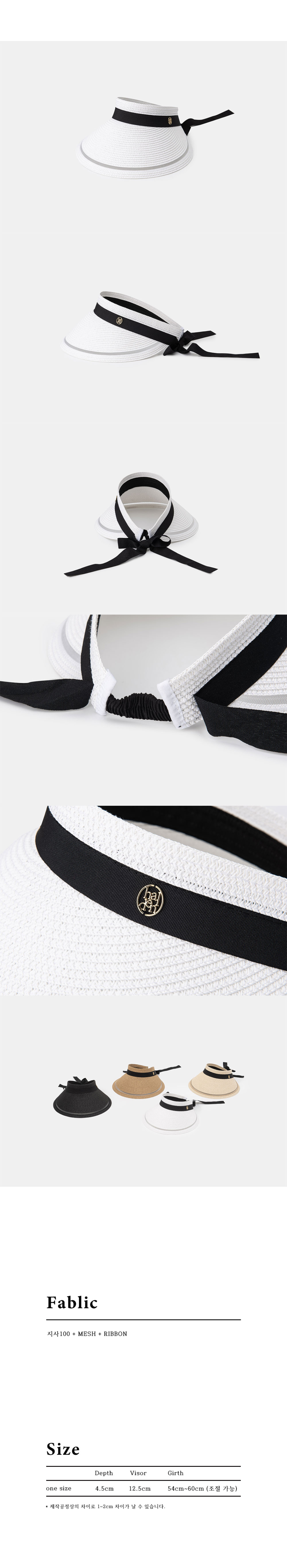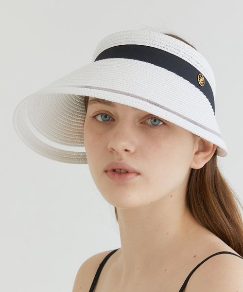 wide ribbon logo pendant raffia sun visor (C010_white)