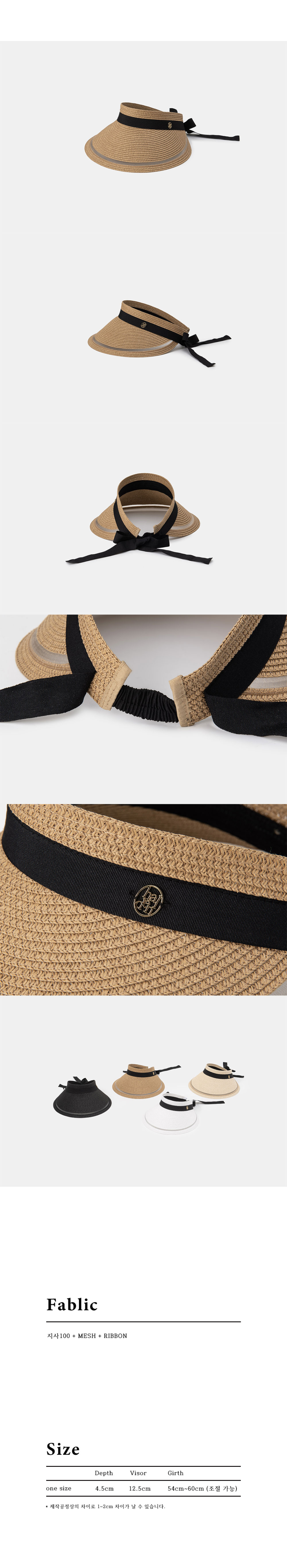 mesh ribbon logo pendant raffia sun visor (C008_beige)