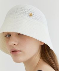 logo pendant raffia bucket hat (C006_white)