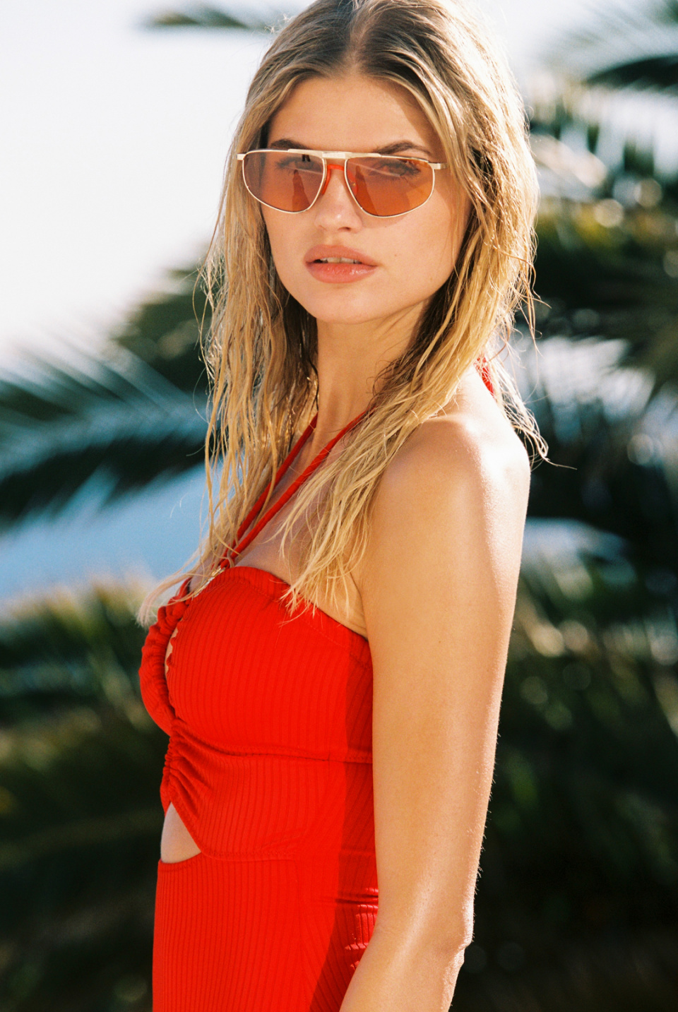 - 비비드한 크림슨레드 컬러와 과감한 컷아웃 디테일이 관능적인 매력의 원피스 수영복