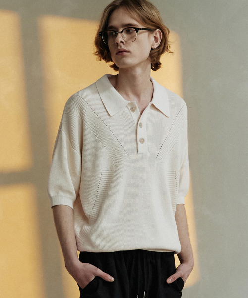 슬래시 펀칭 하프니트 [아이보리]