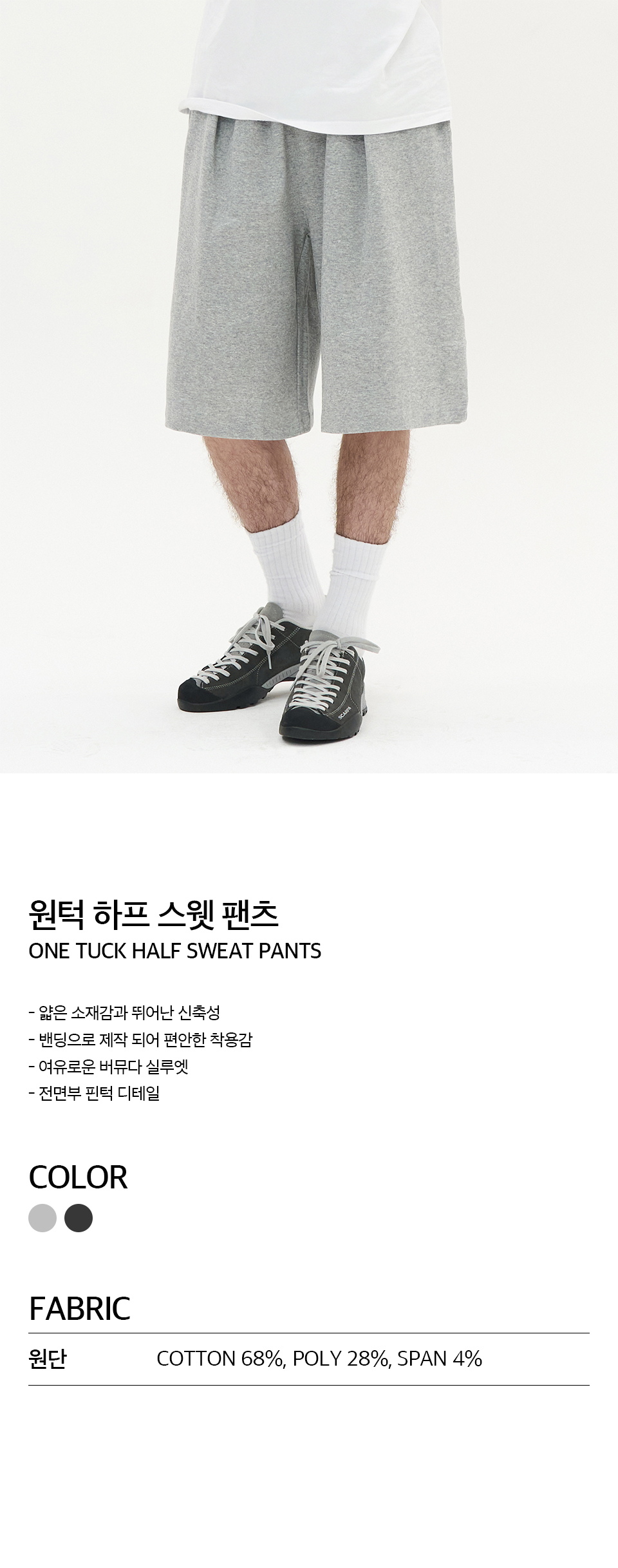 원턱 하프 스웻 팬츠 (MELANGE GREY)