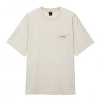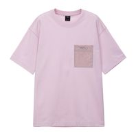 남여 공용의 세미 루즈핏 우븐 배색 반팔 티셔츠입니다.