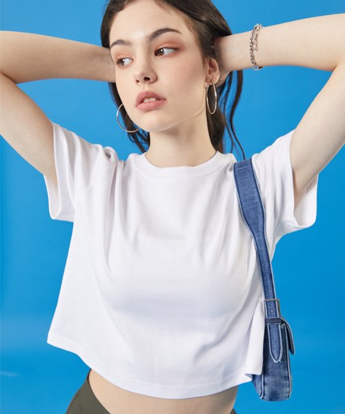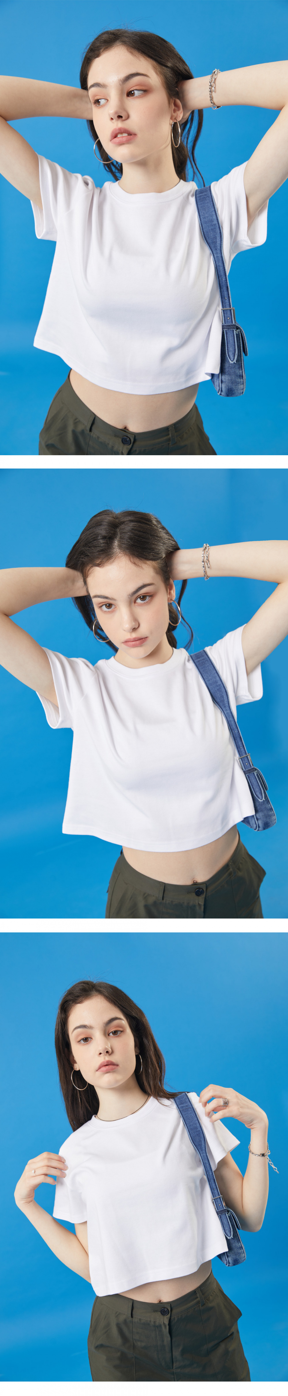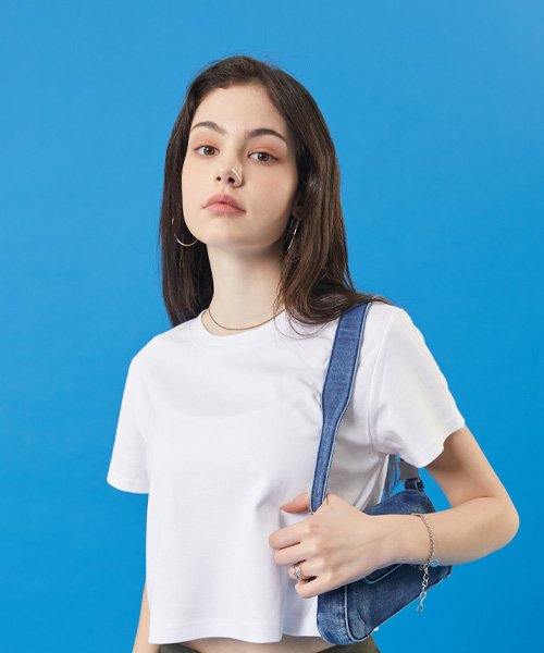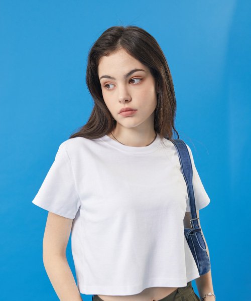 여름 쿨링 마몽 크롭 무지 반팔티 [화이트]