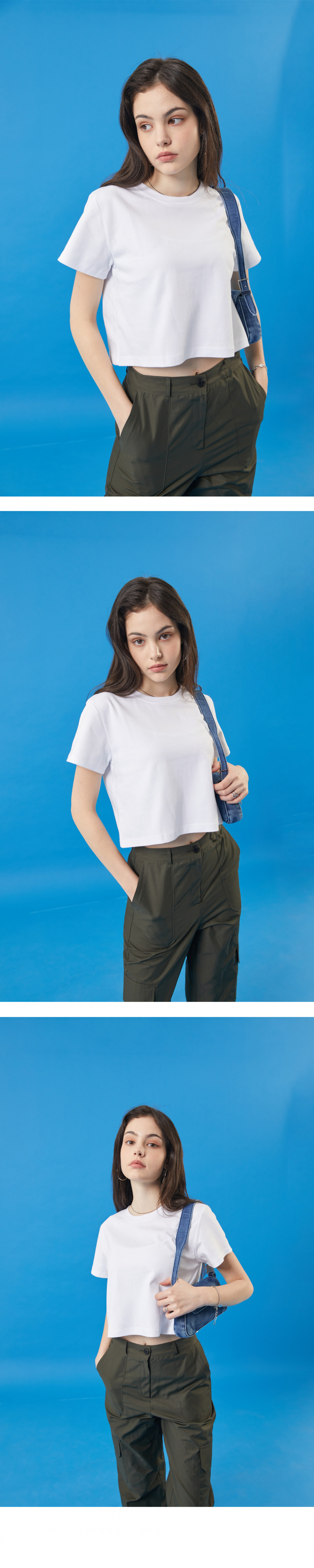 여름 기능성 세미 무지 크롭티 반팔 [화이트]