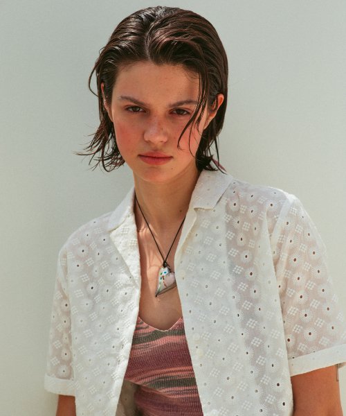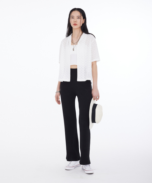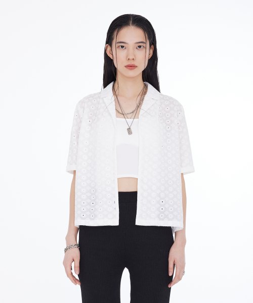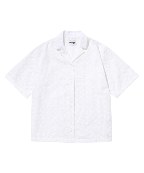 우먼즈 스탠다드 자수 아일렛 반팔셔츠