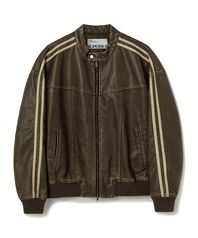 빈티지 트랙 바이커 레더 점퍼 - 브라운