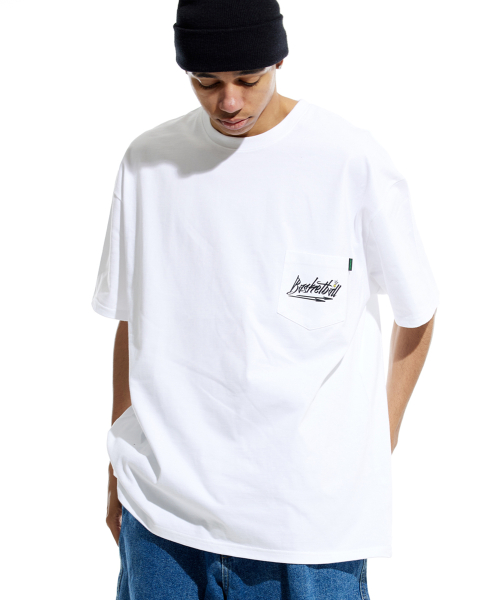 바스켓볼 오버핏 헤비웨이트 포켓 반팔티 화이트 블랙