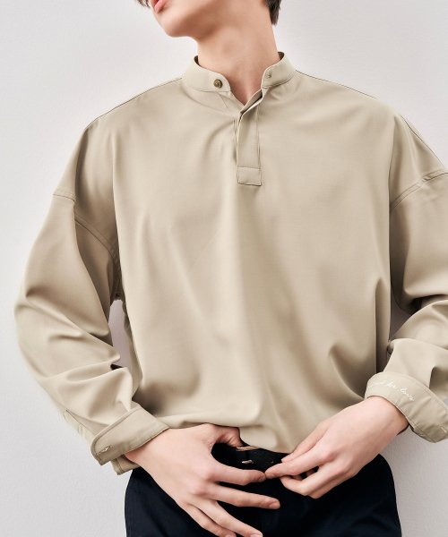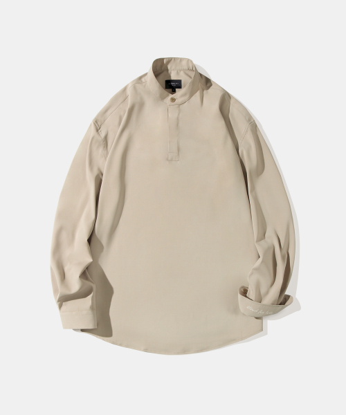 [DIAMOND LAYLA X ANOBLIR] Semi-overfit Open Collar Solid Shirt DA02 Beige