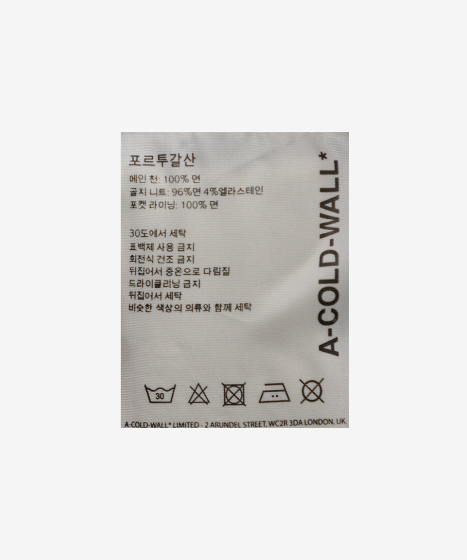 어 콜드 월(A COLD WALL)은 차가운 벽이라는 의미를 담고 있는 브랜드로, 현실 사회와 충돌하는 고정관념이나 선입견을 차가운 벽에 비유해 이를 깨부수고 새로운 미래를 제시하고자 탄생한 영국 스트릿 문화의 집약체입니다. 유스 컬처 무드에 이와 같은 사회적 메시지를 시각적으로 구현한 디자인을 선보이고 있습니다.