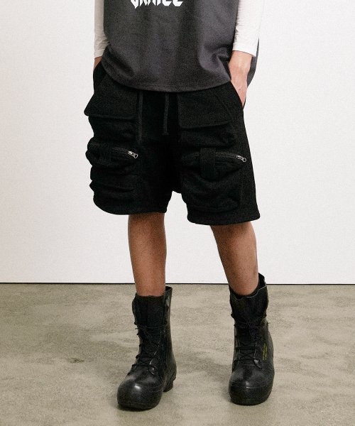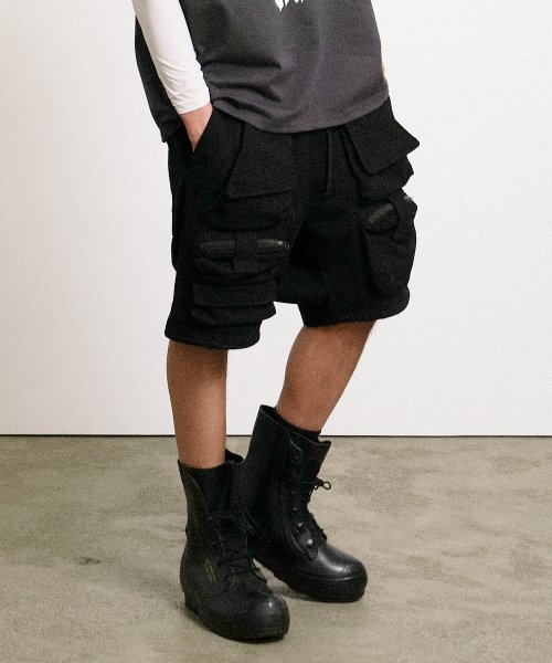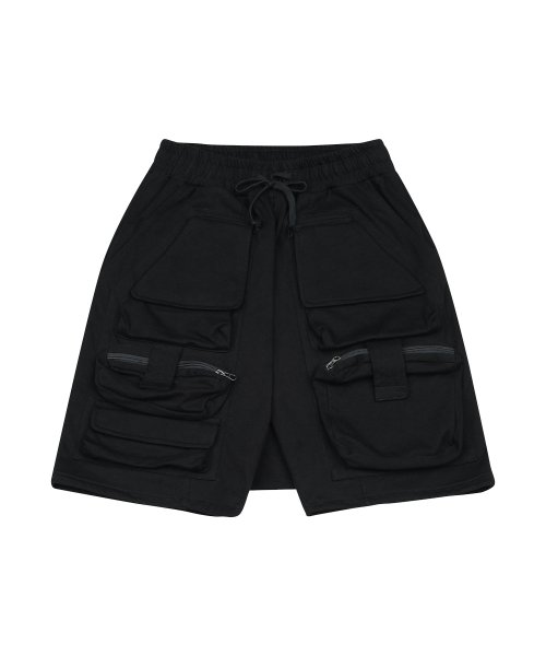LAYERED PANEL SHORTS [BLACK]