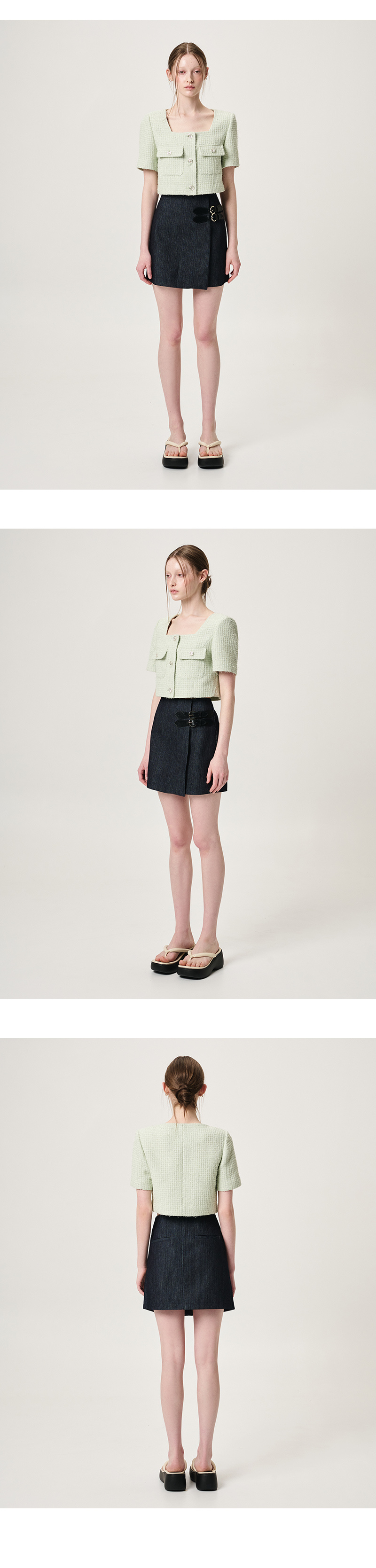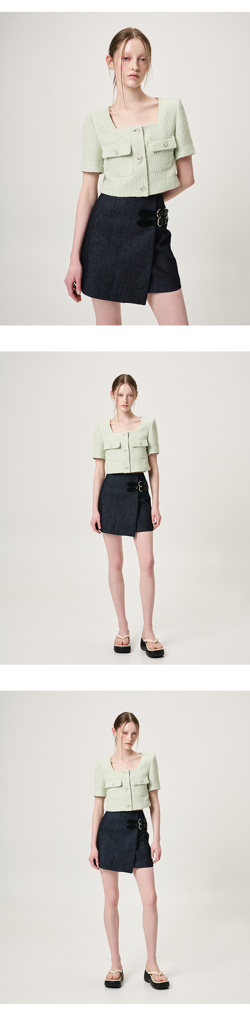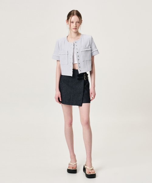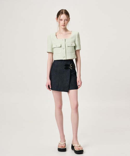 Buckle Wrap Mini Skirt, Black Indigo
