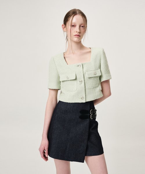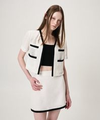 Piping Pocket Tweed Mini Skirt, Black