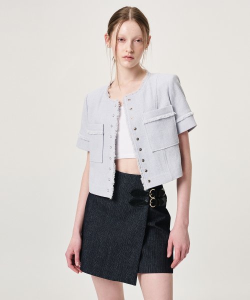 Summer Tweed Mini Skirt, White